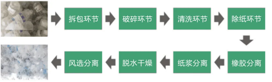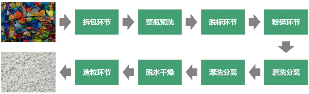 整套設備從拆包到破碎-清洗-除紙-除橡膠-干燥-分離瓶嘴料均可全自動化流水生產(chǎn)。生產(chǎn)出來的成品顆粒基本達到了新料的品質(zhì),廣泛用于注塑擠出、加工造粒等領域。