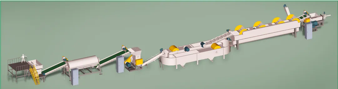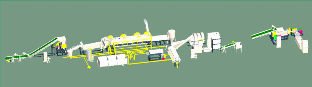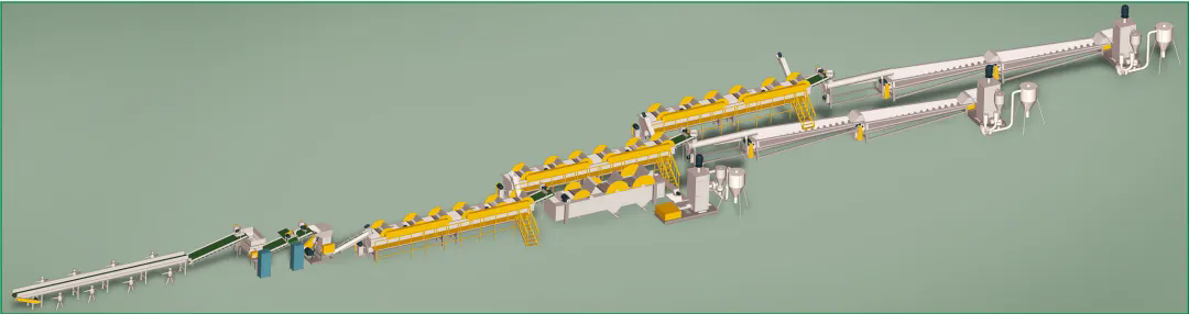 本設備生產(chǎn)出高質(zhì)量的PET瓶片,可用于生產(chǎn)PET再生滌綸等長纖產(chǎn)品和其他高質(zhì)量PET相關產(chǎn)品。該生產(chǎn)線外觀精美、能耗低、產(chǎn)量高,實用可靠。全新的漂洗裝置可以隨破隨洗,大大提高了生產(chǎn)效率,且洗料干凈,達到一級凈片要求。